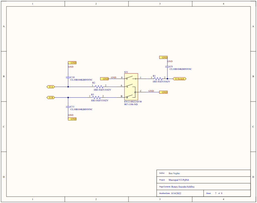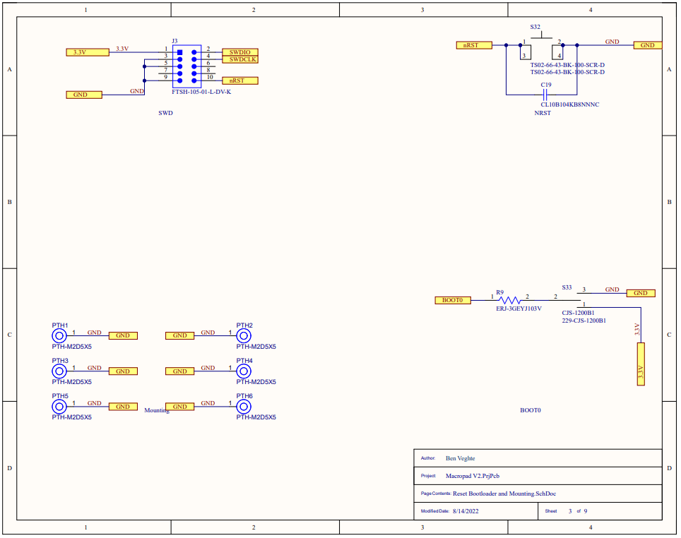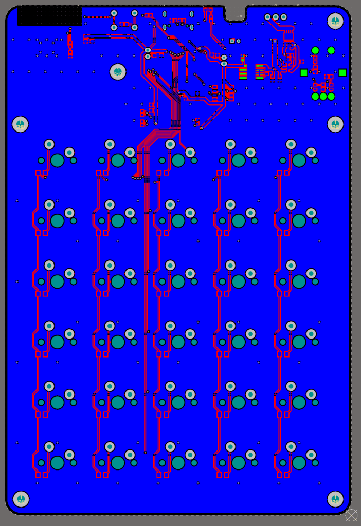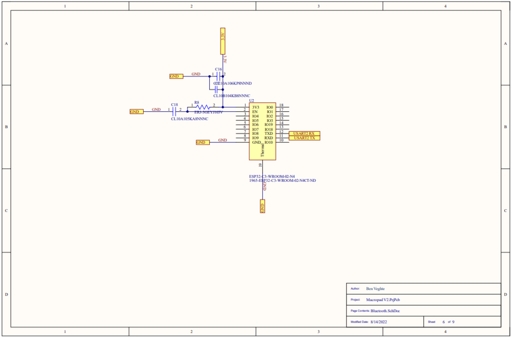 One particular aspect of this project I am particularly proud of is the load sharing circuit. One design requirement I had was that the macropad was wireless so I wouldn’t have to have it plugged in at all times, and I wanted it to work while plugged in. To do this I designed the circuit, the schematic of which is below, that automatically switched from battery to USB power when it was plugged in and back once done charging seamlessly. My one issue with this is that I selected a MOSFET with a slightly unusual package so if the part was out of stock, I was going to have a hard time replacing it.