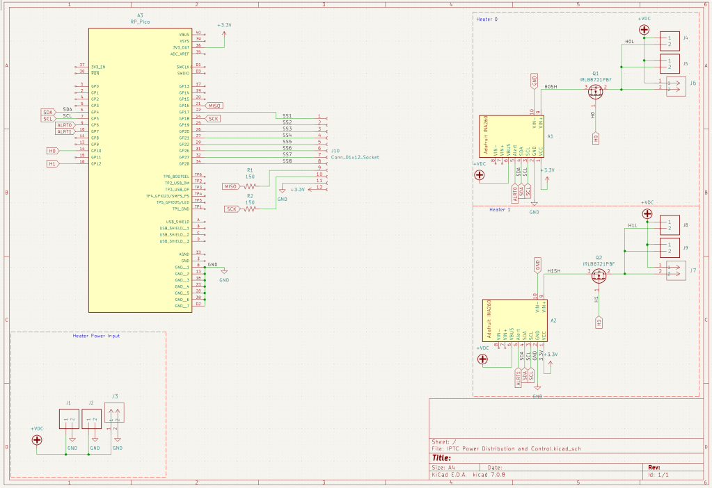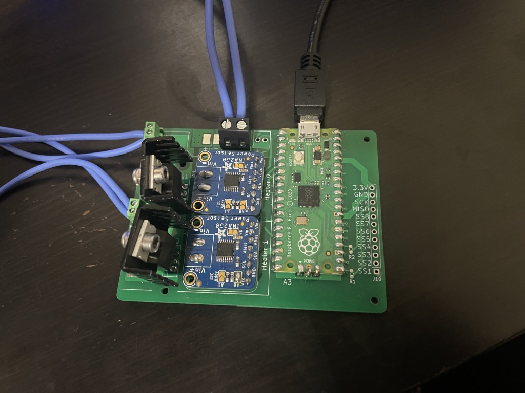 In order to do the sinusoidal control of thermal output I looked at using JFETs as voltage-controlled resistors, voltage controlled current sources, and more expensive signal generators. However, in the end, I settled on using a PWM approximation of a sinusoid using MOSFETs controlled by a Raspberry Pi Pico. The design was first proven on a protoboard.